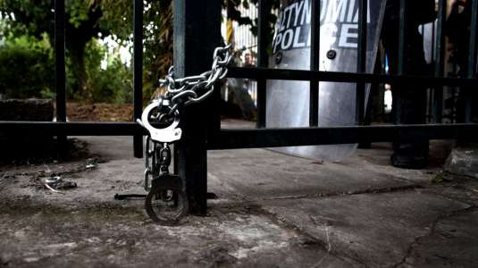 On le craignait (cf l'Anticapitaliste n°215 du 31 octobre) : le gouvernement voulait en finir avec l'occupation de la radio-télé publique ERT par ses propres travailleurs, en lutte contre l'incroyable fermeture de celle-ci au début de l'été, avec licenciement de tous les salariés. Au moment où les représentants de la troïka sont en visite de ''contrôle'' à Athènes, le très indépendant gouvernement Samaras a voulu montrer son empressement zélé à ses créanciers. Mais une nouvelle fois, ce gouvernement , en dévoilant sa brutalité, montre son profond mépris pour l'histoire de ce pays : alors que cette année sera célébré dans la rue le quarantième anniversaire de la révolte des étudiants de Polytechnique réprimée par l'intervention nocturne de l'armée, la violente irruption des MAT (CRS grecs) cette nuit ravive toutes les colères. Et ce n'est pas l'amateurisme de ces violents MAT qui va rehausser la cote de ce gouvernement courant après les voix des électeurs du groupe nazi : ils avaient tout simplement oublié de se munir de chaînes pour refermer les grilles de l'enceinte d'ERT et ont été réduits à la fermer... avec des menottes (cf. photo) ! Tout un symbole (lié au fait que les flics ce matin se sont bien sûr saisis de plusieurs responsables syndicaux) , à faire connaître autour de nous : en Grèce, on met les menottes à la radio-télé publique et à sa volonté d'une information libre, indépendante des intérêts financiers défendus par les télés privées ! Dans la soirée, des milliers et milliers de personnes se sont rassemblées dans plusieurs villes de Grèce, en premier lieu devant les locaux d'ERT en banlieue athénienne. Cette solidarité doit s'étendre, ce nouveau mauvais coup contre la démocratie ne doit pas passer ! Organisons la solidarité avec les travailleurs-euses dERT qui ont déjà annoncé leur résolution : pour eux, le combat continue !Athènes, le 7 novembre 2013A. Sartzekis