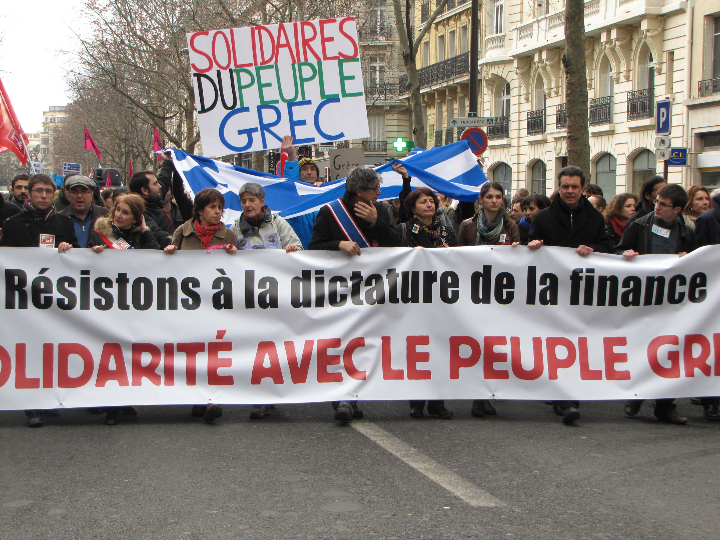 Il est plus que temps que nous, ceux et celles d’en bas de toute l’Europe, prenions à la lettre ce que nous disent nos Merkozy et leur Troïka, et que nous agissions enfin en conséquence. Acceptons le défi et répondons-leur que désormais, sans tarder, la Grèce va devenir un test pour nous aussi, pour le mouvement des travailleurs, pour les mouvements sociaux et féministes, pour les peuples et les exploités de toute l’Europe ! Oui, faisons-leur comprendre que nous sommes tous des Grecs, car nous sommes pleinement conscients que le combat du peuple grec est plus que jamais notre combat. Que s’ils arrivent à briser les résistances et à soumettre le peuple grec, après ce sera notre tour, le tour de tous les autres peuples européens, l’un après l’autre, de passer à la trappe…