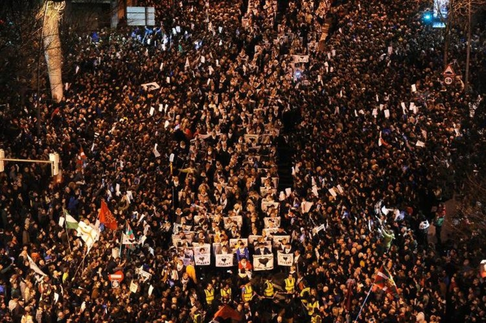 Face à l’interdiction inique de la manifestation initialement prévue samedi 11 janvier à Bilbao par la dynamique Tantaz Tanta pour la défense des droits des prisonniers basques, les partis et syndicats majoritaires du Pays Basque, PNV, SORTU, ARALAR, et GEROA BAI, ELA et LAB ont appelé à manifester le soir même et ont regroupé une marée humaine de plus de 130 000 manifestants à Bilbao, pour la défense des droits humains et pour la résolution politique du conflit. C’est incontestablement une des plus imposantes et puissantes manifestations de ces dernières années, démontrant ainsi de quel côté est la volonté du peuple basque.