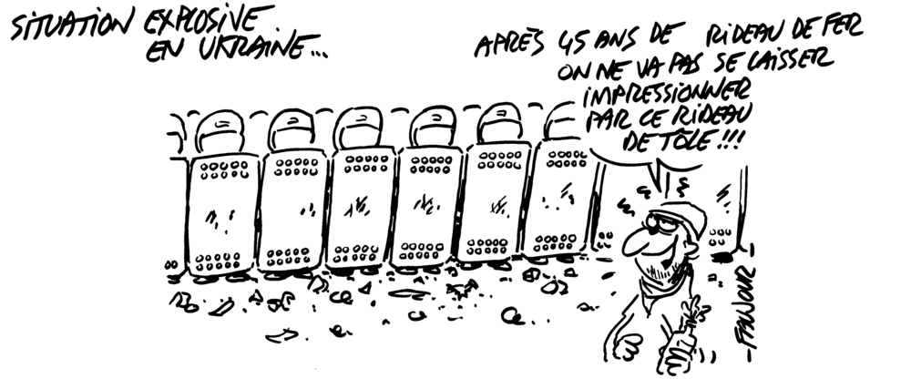 L’extrême droite et les apprentis sorciersÀ Kiev, comme dans les régions de l’ouest et du centre, l ’occupation des bâtiments est principalement organisée par le troisième parti d’opposition parlementaire Svoboda/Liberté et divers autres groupes d’extrême droite, avec un soutien populaire dans le contexte de rejet massif des violences policières et d’un président de plus en plus discrédité. Mais il n’y a ni processus d’auto-organisation de la population ni même montée en masse des mobilisations, en dépit d’une certaine extension territoriale. Cela donne un rôle surdimensionné à des groupes bien structurés, en lien ou en rivalité avec Svoboda (qui célèbre les sinistres bataillons SS en Galicie).Avec les deux autres « partis pro-européen » (donc anti-russes), ce dernier est légitimé par la presse et les dirigeants occidentaux jouant un rôle d’apprenti sorcier. Svoboda et les groupes liés ou rivaux obéissent à une logique de prise de pouvoir larvée directe : là où ils dominent (Galicie...), ils ont décrété l’interdiction du Parti communiste ukrainien qui a lancé un appel à référendum et changements constitutionnels (1). Ils propagent slogans et idéologie néo-nazis, antisémites et homophobes, qui pénètrent en partie les forces de sécurité et forces spéciales du régime, les Berkut.
