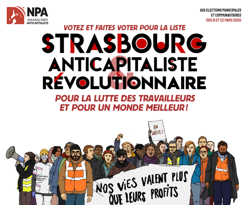 Le NPA présente une liste aux municipales strasbourgeoises. Le but est de représenter les intérêts des classes populaires et de toutes celles et ceux qui luttent contre la politique de Macron et du Medef. Nous ne ferons évidemment pas miroiter une « bonne » gestion aux municipales mais ferons entendre une autre voix dans le concert politicien : ce sont nos luttes qui ferons la différence !