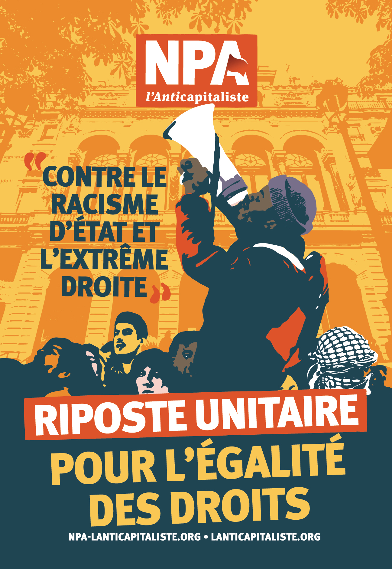 Autocollant : « Contre le racisme et l'extrême droite , riposte unitaire pour l'égalité des droits »