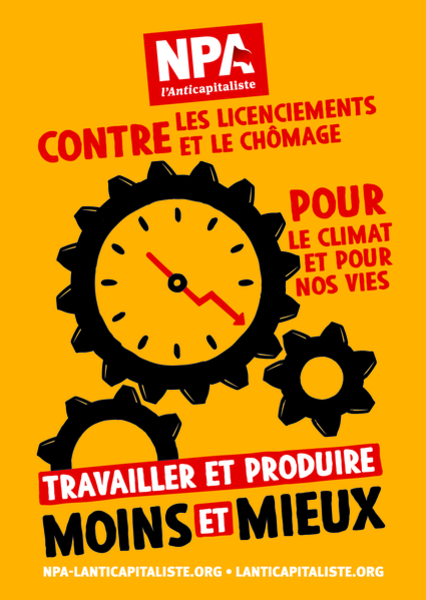 Affiche/Autocollant : « Contre les licenciements et le chômage. Pour le climat et pour nos vies. Travailler et produire moins et mieux »