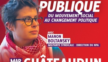 Réunion publique du comité NPA de Châteaudun : « Du mouvement social au changement politique », avec Manon Boltansky, militante syndicale et membre de la direction du NPA.
