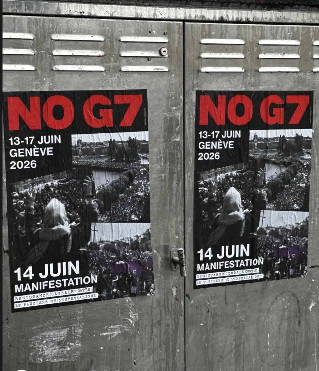 Mobilisation internationale contre le G7, du 13 au 17 juin 2026 à Genève, avec une manifestation « Résistance globale contre le fascisme et l'impérialisme » dimanche 14 juin.