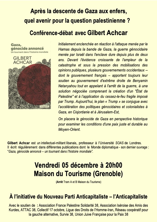 Conférence-débat « Après la descente de Gaza aux enfers, quel avenir pour la question Palestinienne ? », avec Gilbert Achcar.
