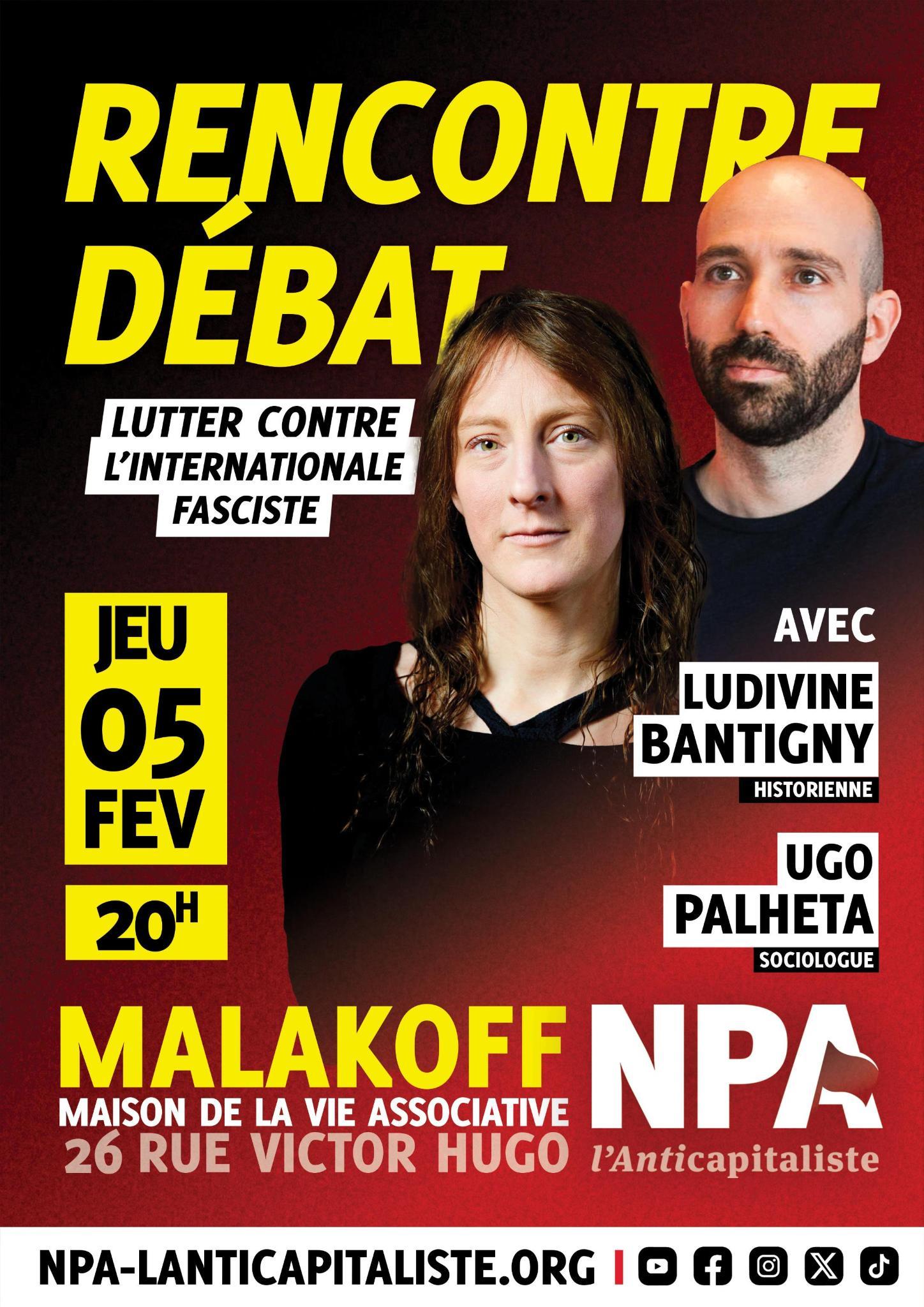 Rendez-vous jeudi 5 février à 20h, Maison de la vie associative, 26 rue Victor Hugo à Malakoff.