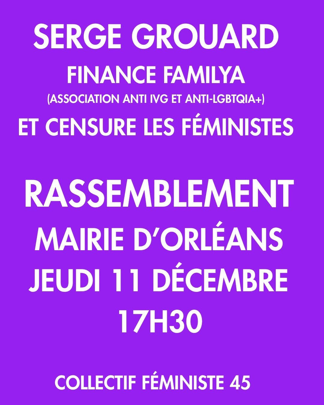 Rendez-vous jeudi 11 décembre 2025 à 17h30 devant la mairie d'Orléans.