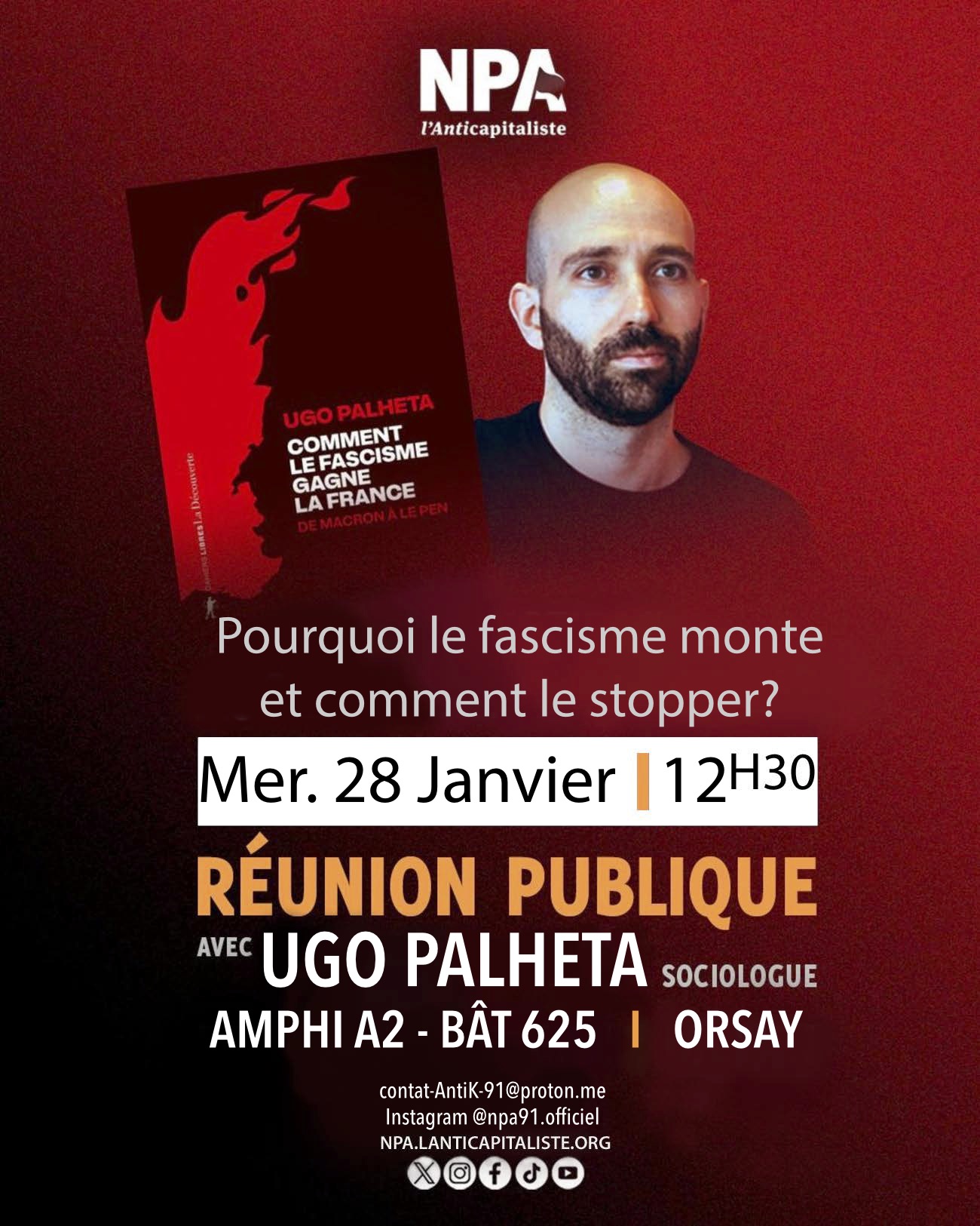 Orsay (91) : Réunion publique avec Ugo Palheta « Pourquoi le fascisme monte et comment le stopper? »