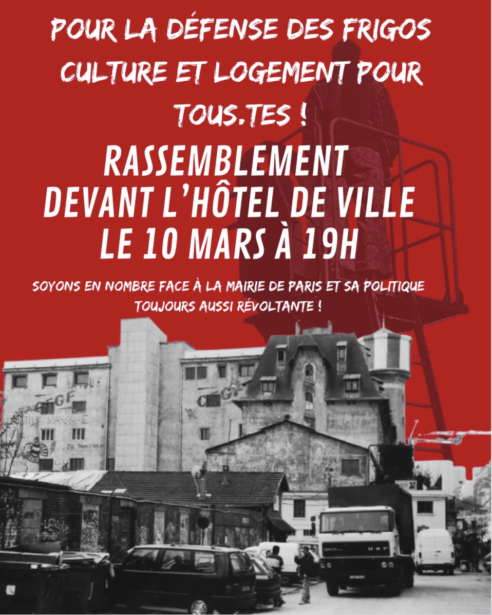 Contre les expulsions, pour la réatribution des ateliers vides et une vraie prise de position politique sur la situation des Frigos