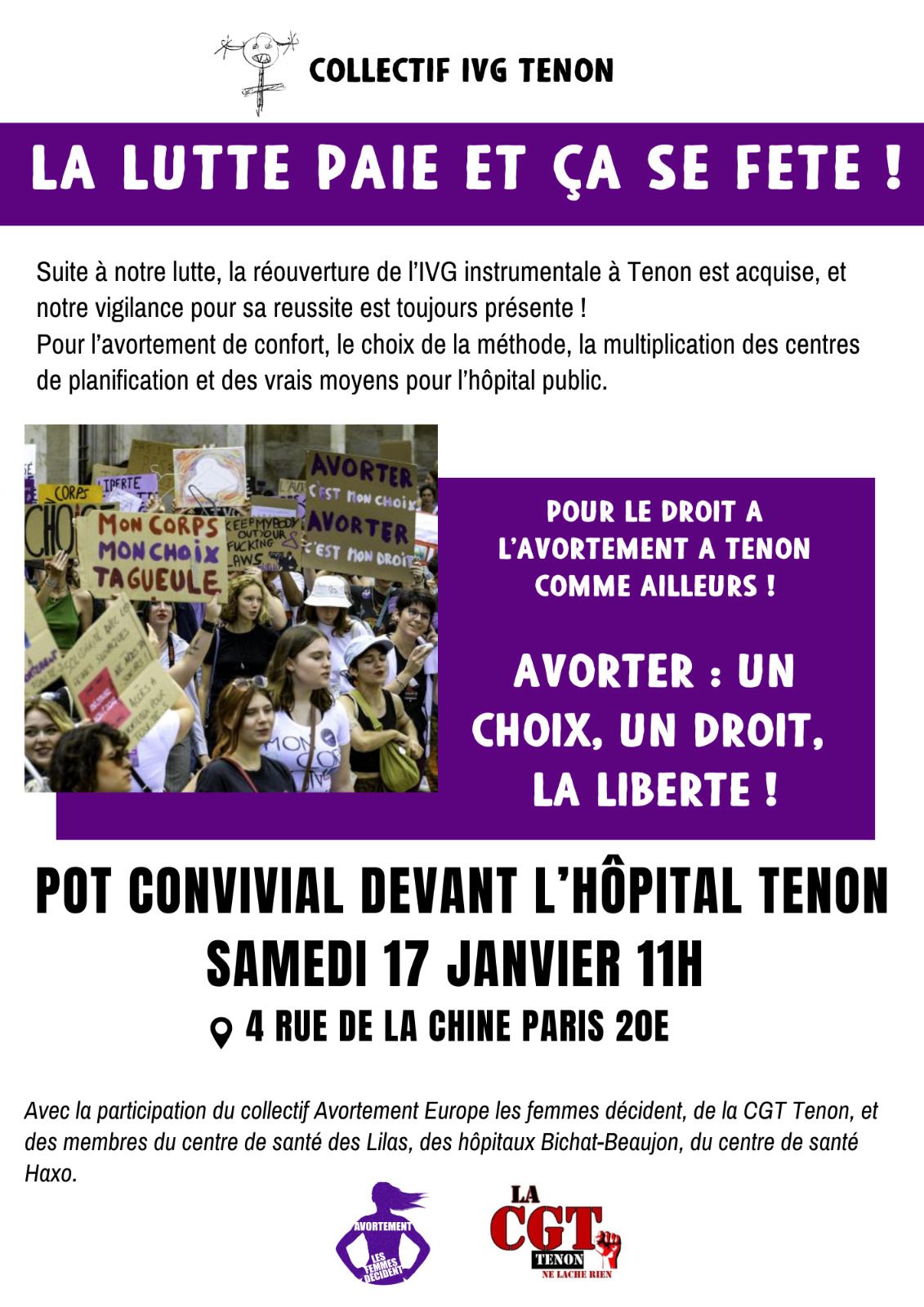 Rassemblement pour le droit à l'avortement et pot convivial devant l'hôpital Tenon.