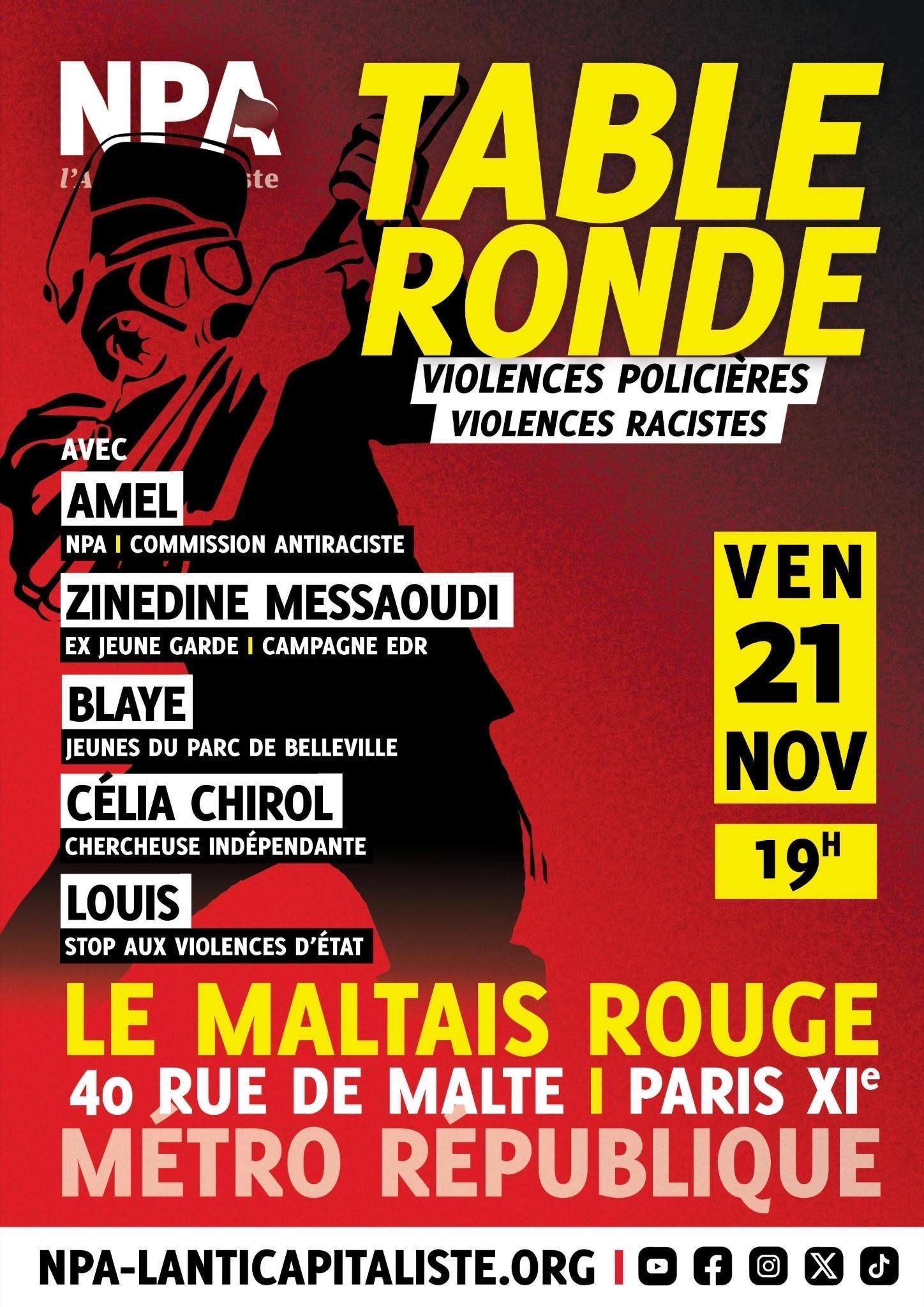 Table-ronde « Violences policières, violences racistes ».