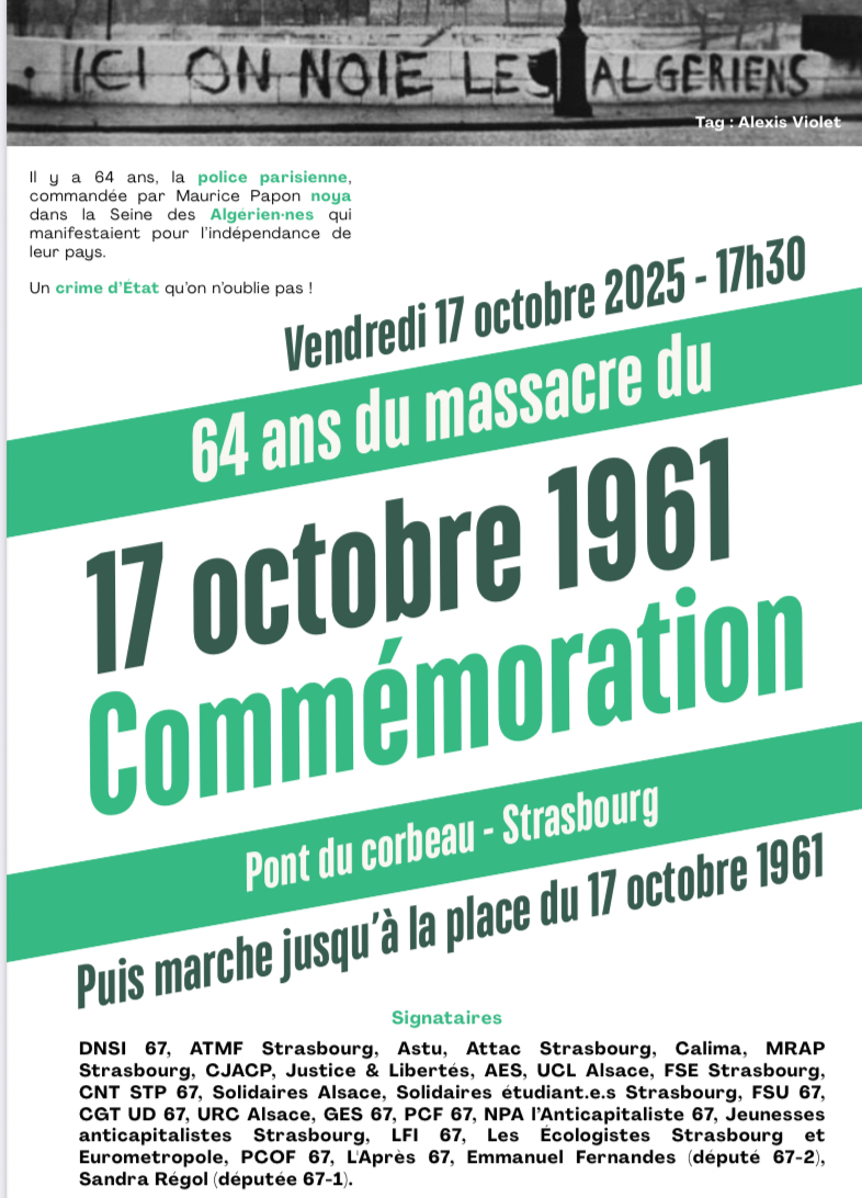 Strasbourg (67) : Commémoration du 17 octobre 1961