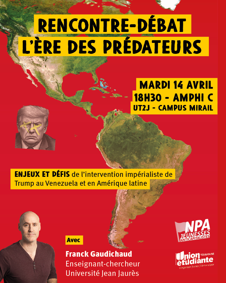 Ce 14 avril, les Jeunesses Anticapitalistes organisent une rencontre-débat autour de ces enjeux au Venezuela, à Cuba et dans toute l’Amérique latine, avec l’historien Franck Gaudichaud (membre de la rédaction de la revue en ligne Contretemps) et l’Union Étudiante de Toulouse.