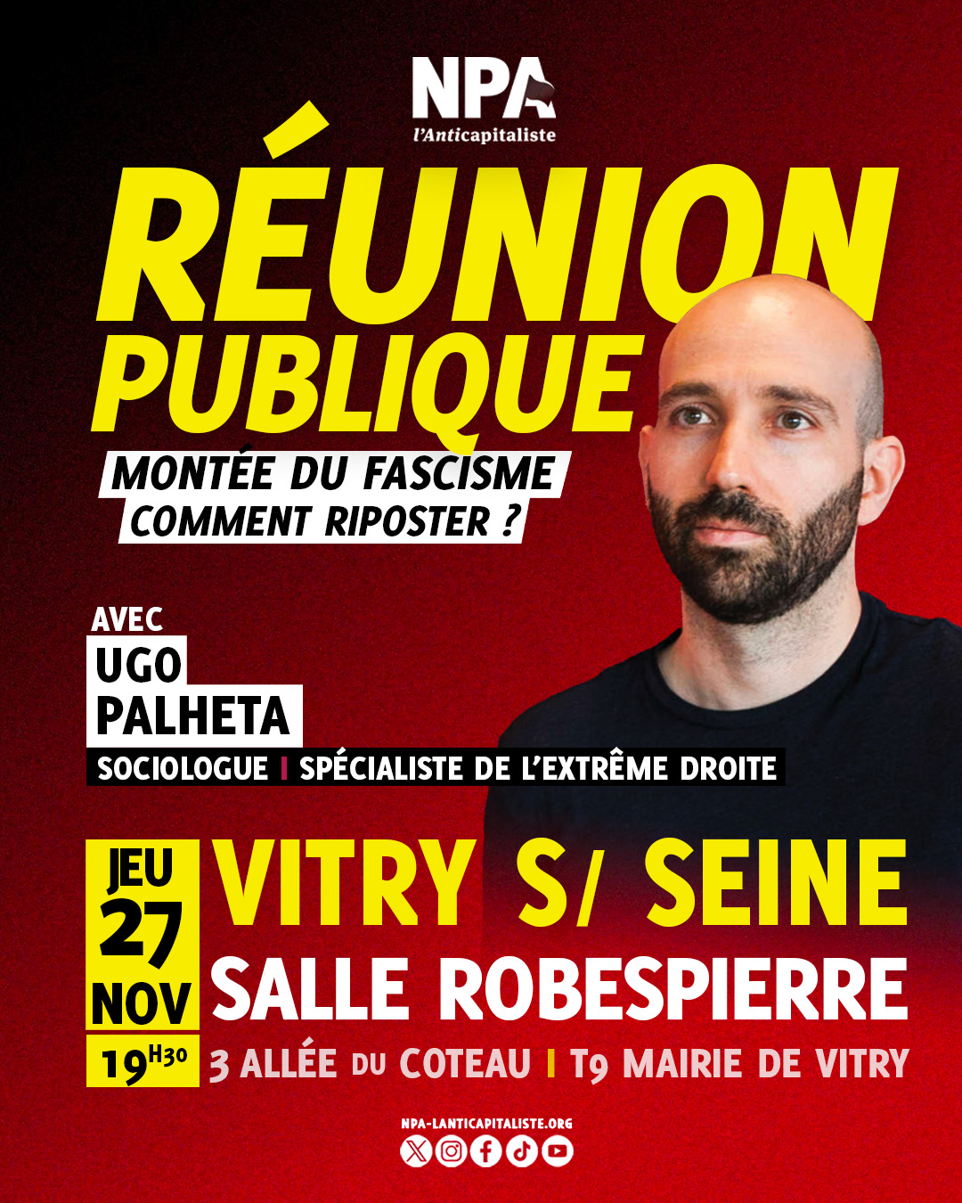 Réunion publique « Montée du fascisme, comment résister? » avec Ugo Palheta à Vitry-sur-Seine.
