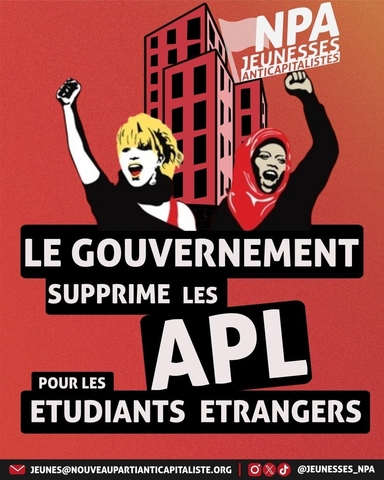Après avoir mis en place des dispositifs racistes et précarisants tels que “Bienvenue en France”, le gouvernement décide encore une fois de s’attaquer aux droits des étudiant.es étranger·es hors-UE en retirant les APLs à toustes les non-boursièr.es sous prétexte qu’iels auraient donc suffisamment de moyens et ne seraient pas assez pauvre pour les mériter. Cette logique n’est qu’un pas supplémentaire dans la rhétorique profondément productiviste et raciste de l’État Français, qui désire soutenir uniquement des placements “rentables” d’étudiant.es inseré.es dans le territoire… tout en expulsant à tour de bras les étudiant·es étranger·es des CROUS et logements sociaux.