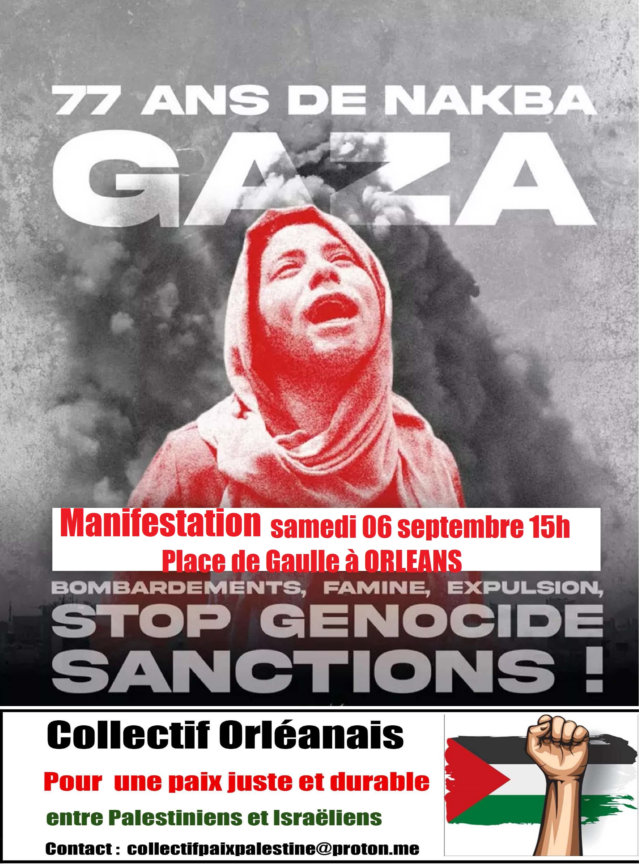 Samedi 6 septembre 2025 - 15h00 Rendez-vous samedi 6 septembre 2025,15h, Place de Gaulle à Orléans. Copied to clipboard