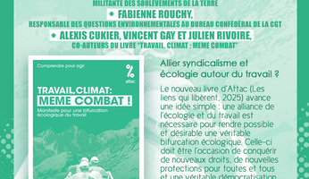 Rencontre-débat autour du livre Travail, climat : même combat ! écrit par Alexis Cukier, Vincent Gay, Gaëlle Guéhennec, Frédéric Lemaire, Julien Rivoire pour Attac.