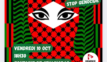 Manifestation organisée par le Collectif Palestine Saint-Denis, rendez-vous vendredi 17 octobre 2025, 18h30, gare de Saint-Denis.