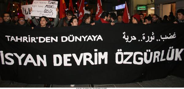 Face au déclenchement de la révolution tunisienne, le gouvernement turc s’était retrouvé dans une situation de spectateur sidéré. Mais quand la révolution a atteint Egypte, il a réalisé la profondeur des transformations en cours dans la région. Erdogan a été le premier chef de gouvernement dans le monde à exiger le départ de Moubarak, et il fut chaleureusement accueilli par les Frères musulmans lors de sa visite en Egypte en septembre 2011. Il y était accompagné d’une importante délégation d’hommes d’affaires turcs caressant l’espoir de renforcer les relations économiques avec ce grand pays et marché arabe.