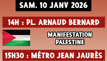 Rendez-vous 14h place Arnaud Bernard pour la manifestation en solidarité avec la Palestine et 15h30 métro Jean Jaurès en solidarité avec le peuple vénézuélien