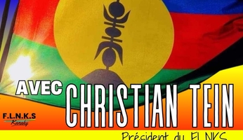 Meeting FLNKS avec Christian Tein, président du FLNKS, Oriane Trolue, Emmanuel Tjibaou, Robert Xowie et Mickael Forrest.