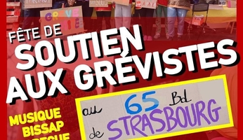 Fête de soutien aux grévistes du 65 boulevard de Strasbourg, 75010 Paris.